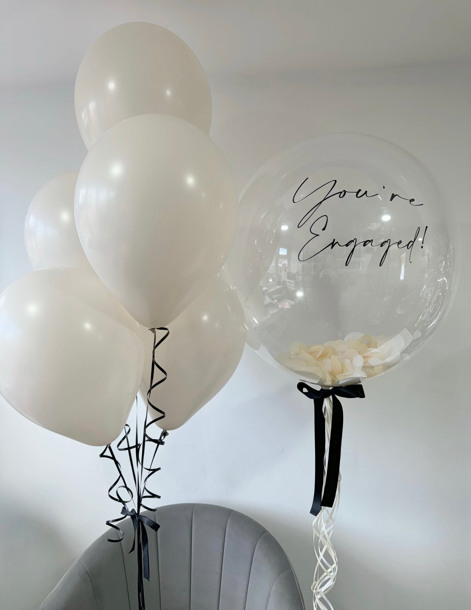 Our personalised bubble balloon with confetti inside is perfect for any occasion when paired with a cluster of 5 latex balloons. Add your wording and colour preferences in the comment section prior to checking out.